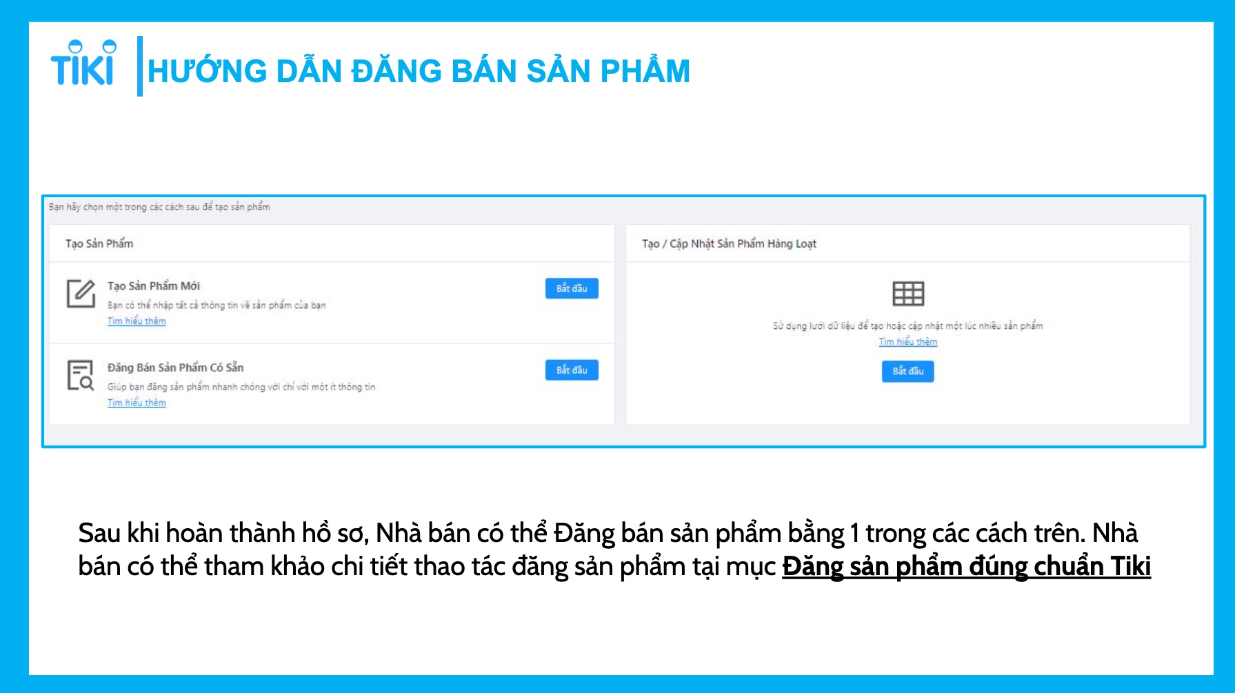 Để có thể hiểu rõ về 3 cách này, bạn có thể truy cập Hướng dẫn đăng sản phẩm đúng chuẩn Tiki Tại Đây