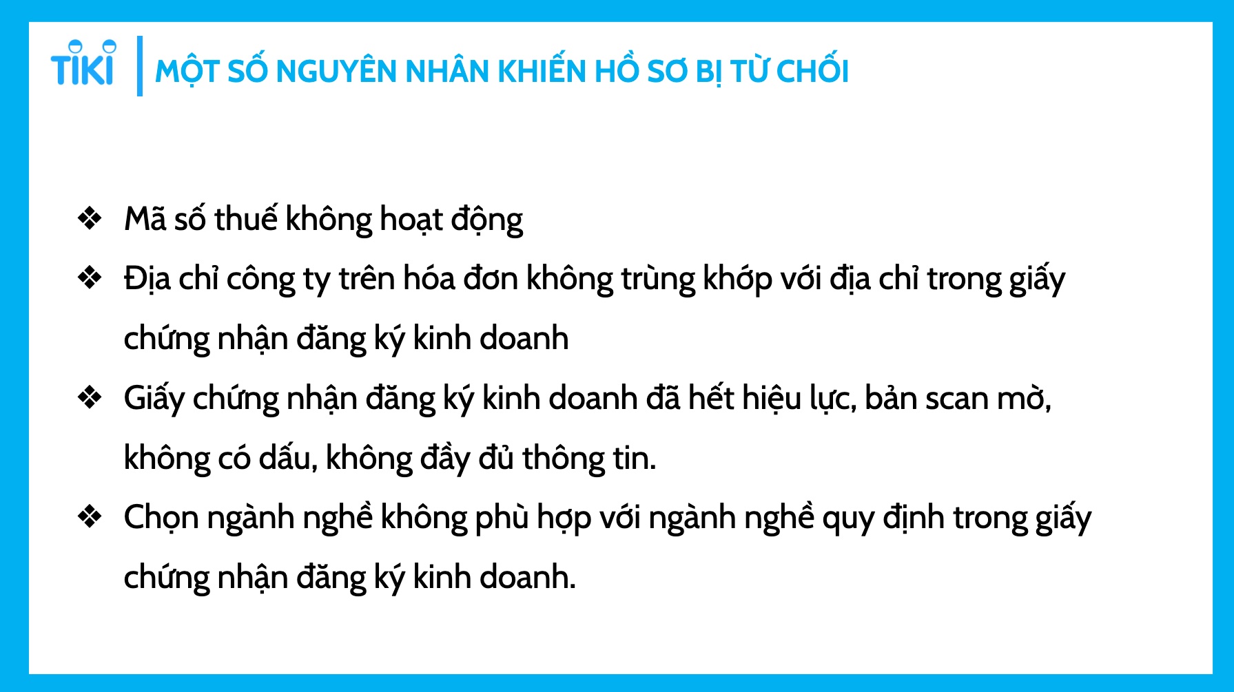 Một số nguyên nhân bị từ chối hồ sơ Nhà Bán Hàng Tiki