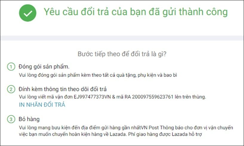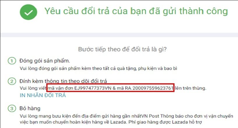 Bạn có thể kiểm tra trong email hoặc tài khoản Lazada của mình. Nhãn đổi trả cũng có thể được đính kèm trong hộp đựng gói hàng ạ.