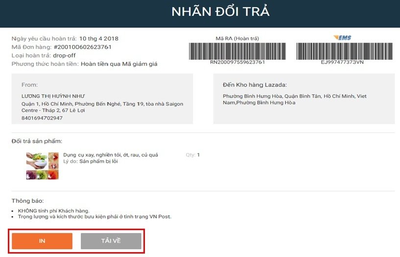 Hướng dẫn đổi trả hoàn tiền Lazada