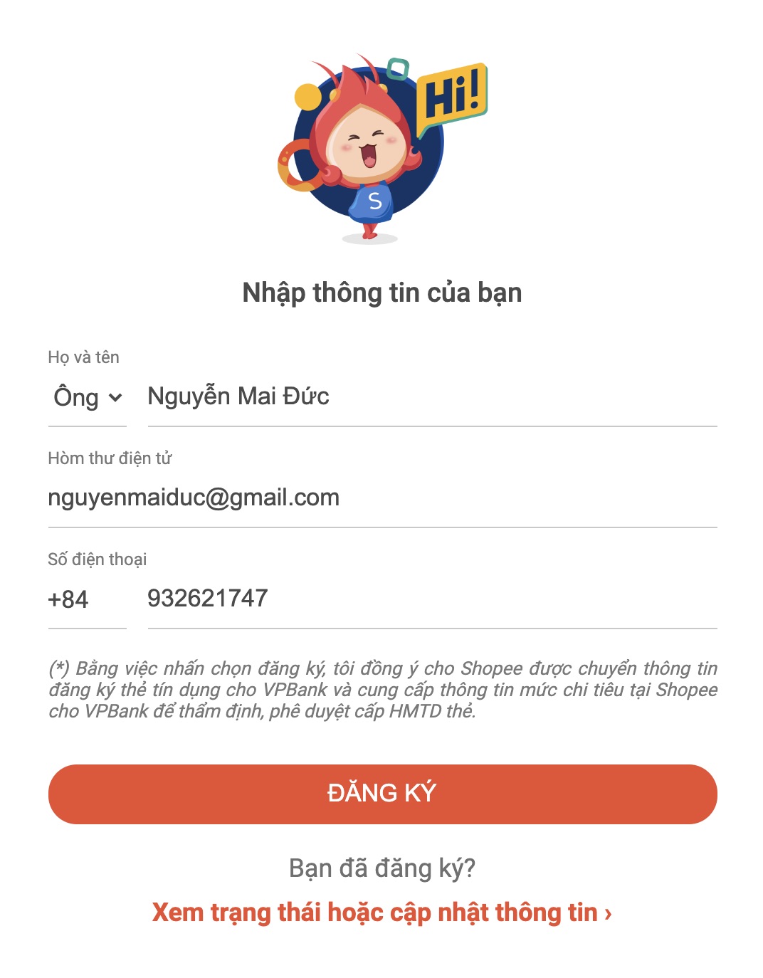 Một số câu hỏi khi mở thẻ tín dụng VPBank Shopee