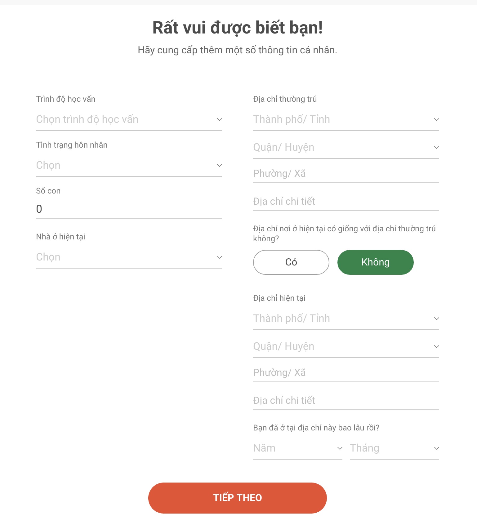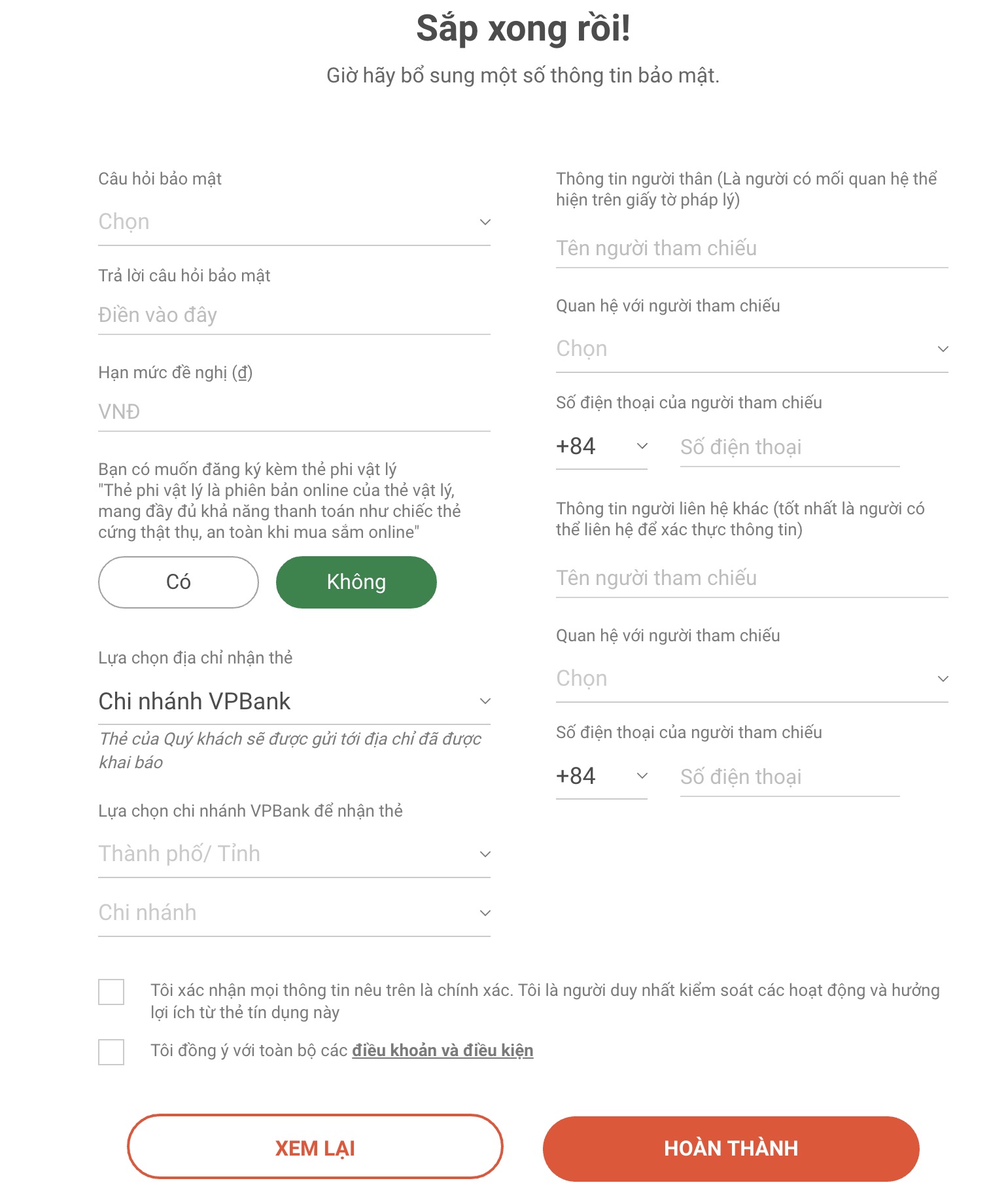 Một số thông tin cần thiết nữa trước khi đến bước cuối cùng. Ngân hàng cần biết bạn đã có ràng buộc tại Việt nam chưa(Vợ/Chồng/Con/Bố/Mẹ), bạn là công dân Việt Nam được bao lâu.