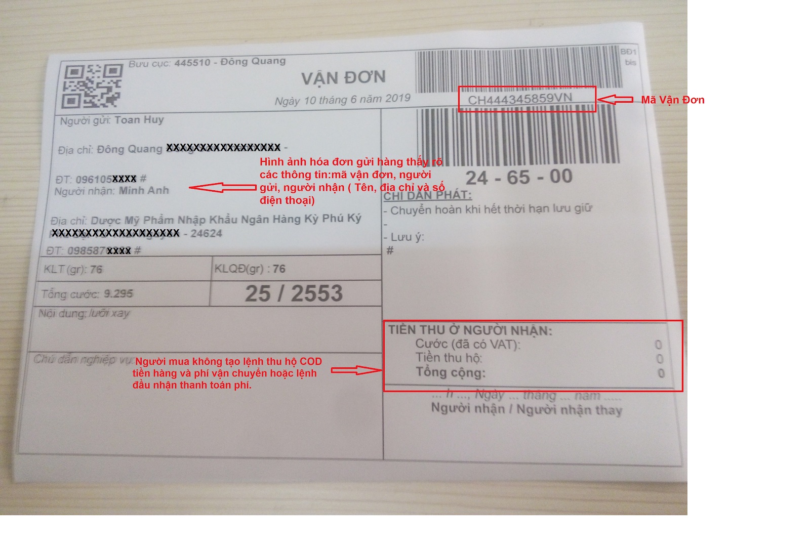 Hình minh họa hóa đơn gửi hàng và Mã vận đơn