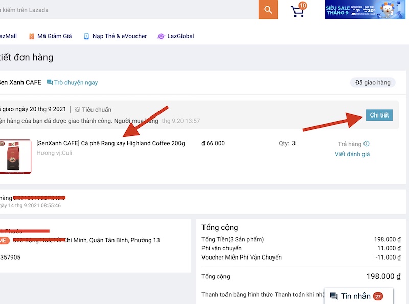 Bước 3: Kiểm tra tình trạng đơn hàng Lazada