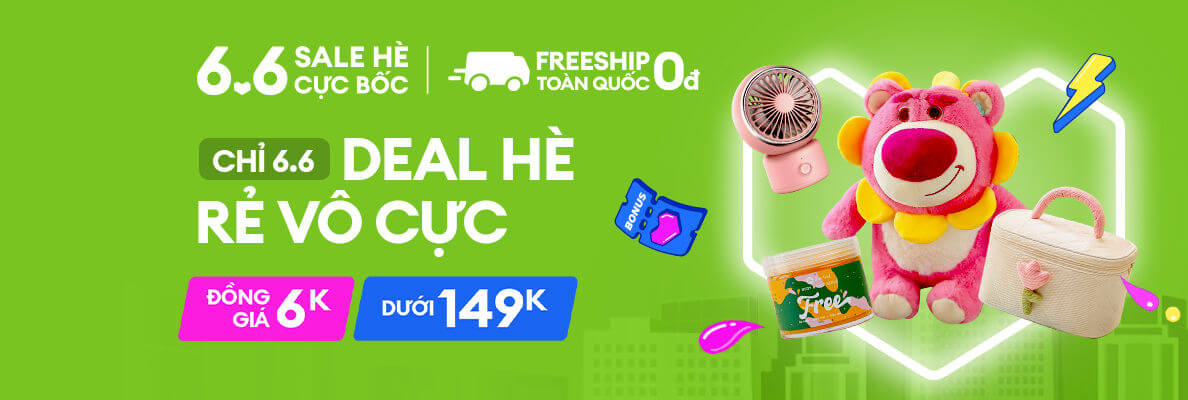 Đây là chương trình Flash sale dành riêng cho 6.6 của Lazada, giảm đến 50% và còn mua 1 tặng 1. Sản phẩm thay đổi theo giờ nên bạn hãy liên tục theo dõi nhé.