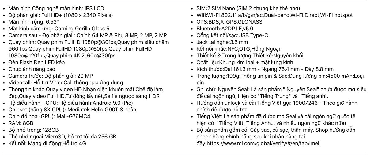 - Hệ điều hành: Android 9.0 (Pie); MIUI 10