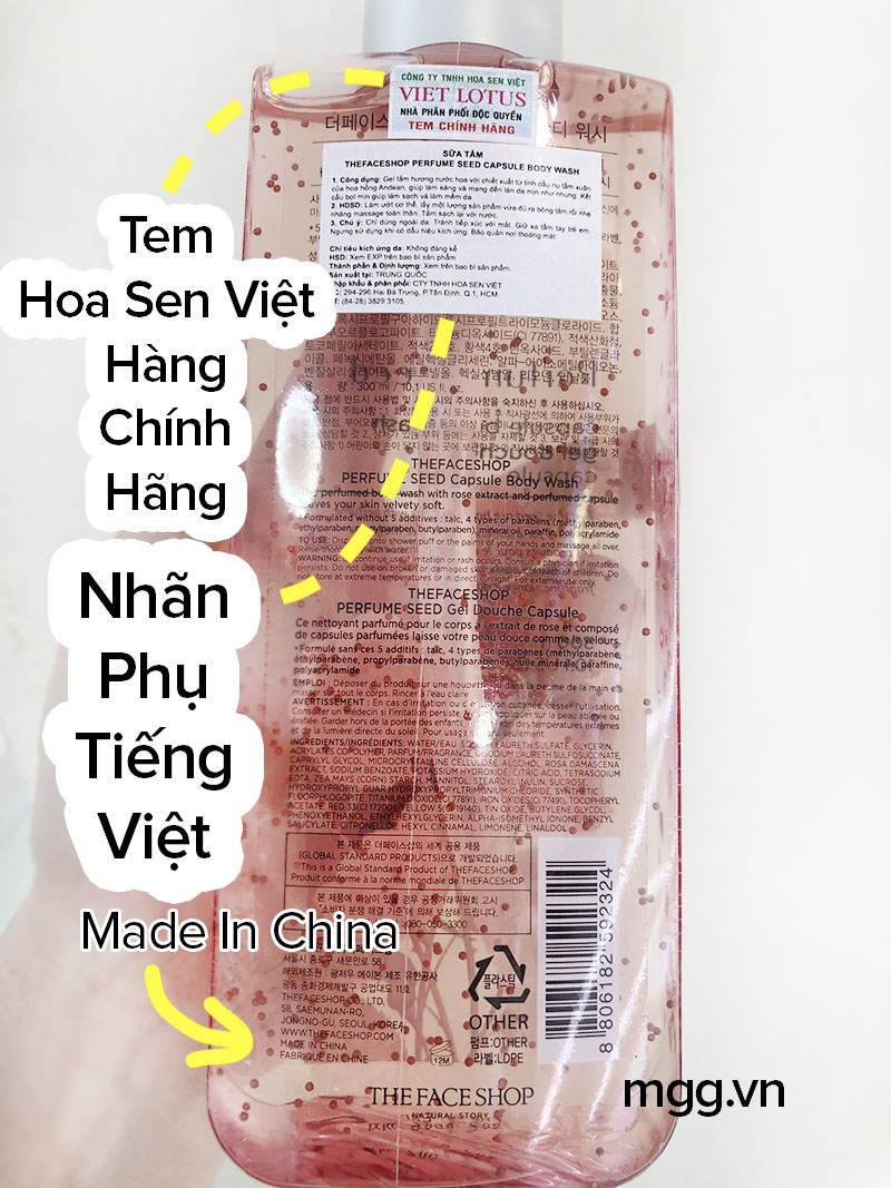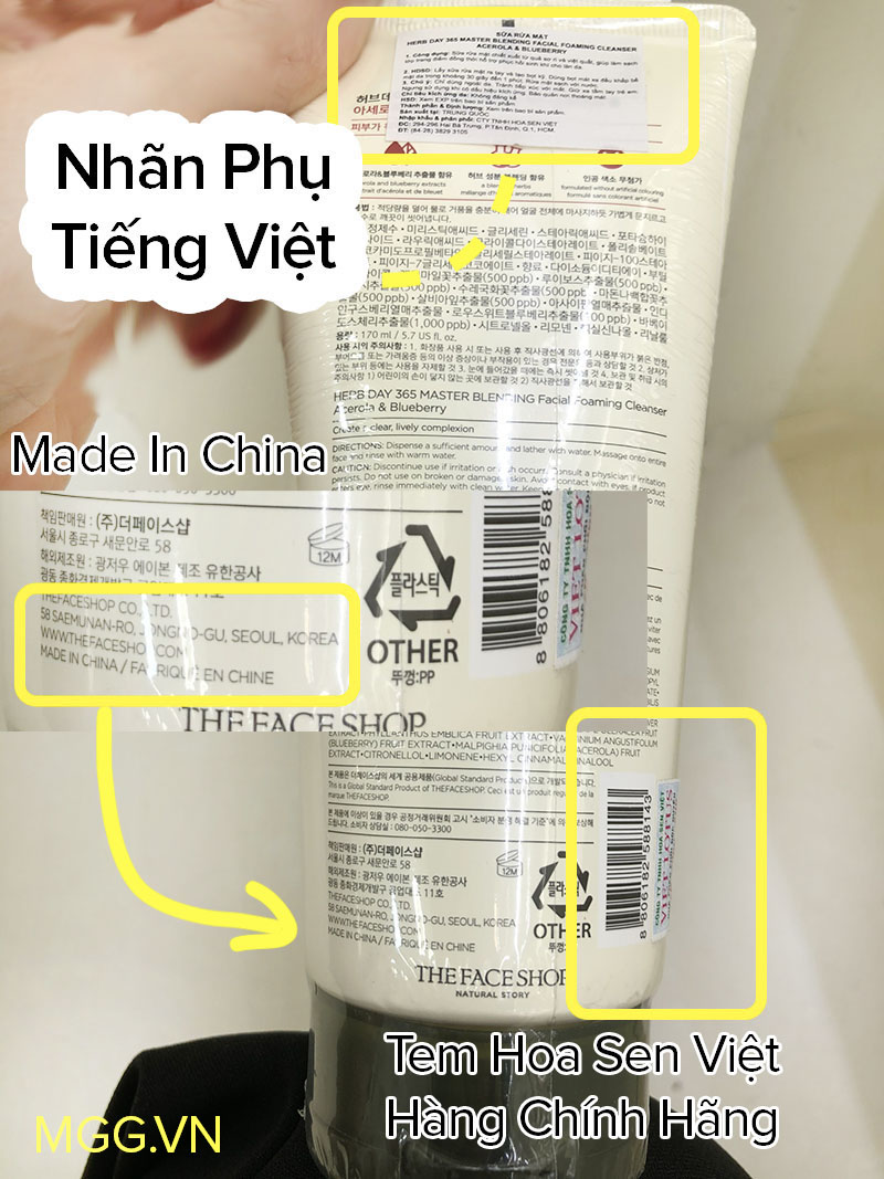 MGG.VN có tham khảo một số sản phẩm The Face Shop tại Showroom của Hoa Sen Việt (VietLotus) chính hãng có nhãn mác tem và cũng có dòng chữ MADE IN CHINA.