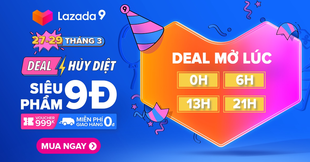 - Mỗi ngày từ 20/03 đến 26/03, vào lúc 00h sẽ mở bán các sản phẩm Flash Sale giá 9đ.