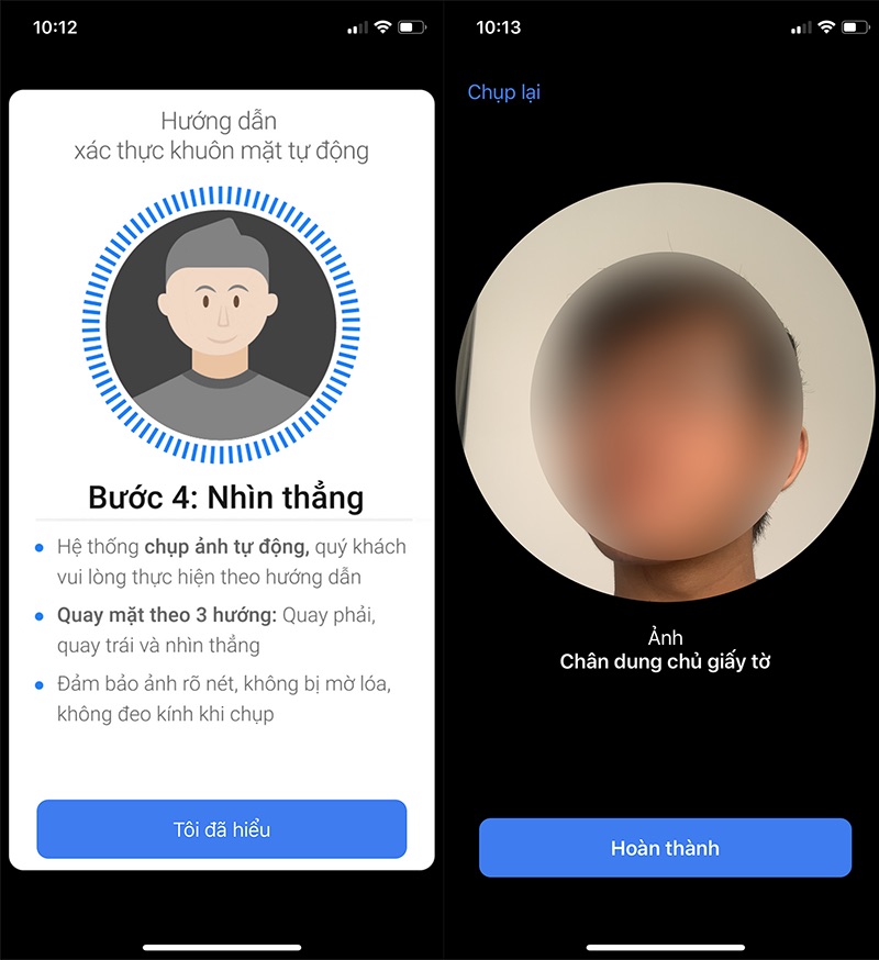 Ở bước tiếp theo, bạn sẽ phải xác thực khuôn mặt nhằm tránh giả danh tính, kết hợp với việc xác thực chứng minh nhân dân. Mức độ bảo mật cho tài khoản của bạn đã được tăng lên đáng kể.