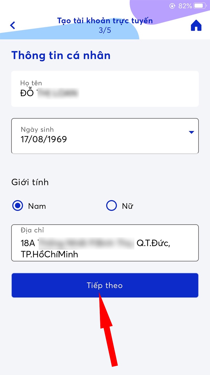 Sau bước trên, bạn sẽ bắt đầu nhập thông tin cá nhân để MBBank lên hồ sơ vay tiền online. Thông tin cá nhân: