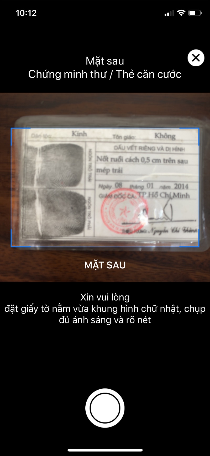 Tiếp theo là bạn sẽ chụp 2 mặt của chứng minh nhân dân để xác nhận danh tính của bạn. Nhằm xác nhận là bạn đăng ký chứ không phải là người khác giả danh tính của bạn.